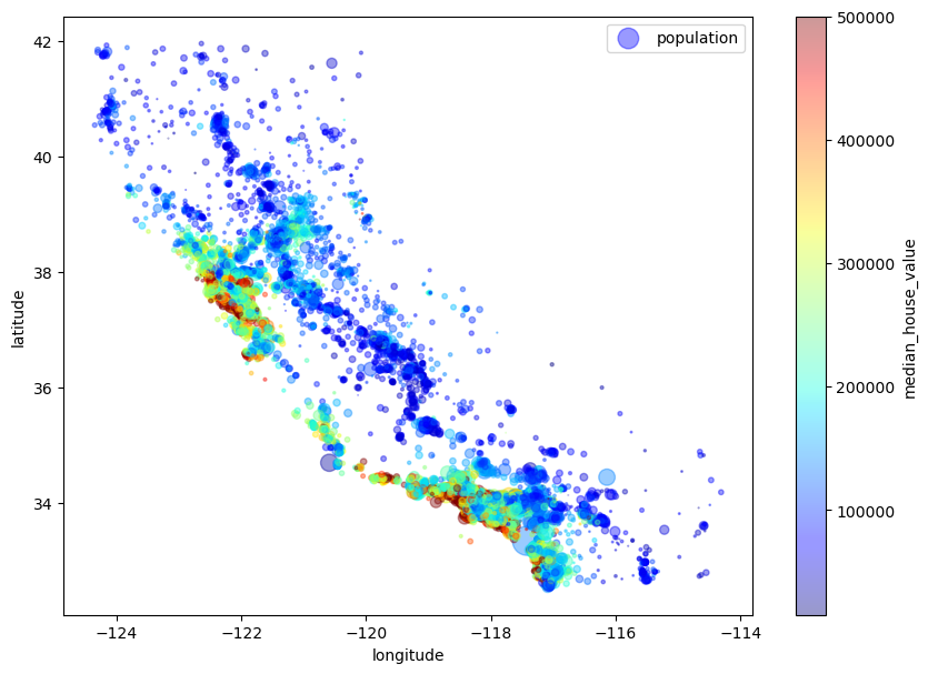 将经度纬度绘制出来,再设置圆的半径代表人口数量,颜色代表价格。